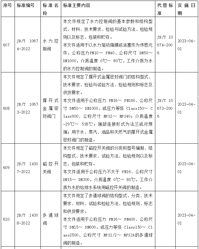 《水力控制閥》等17項閥門行業標準獲批,2023年4月1日實施