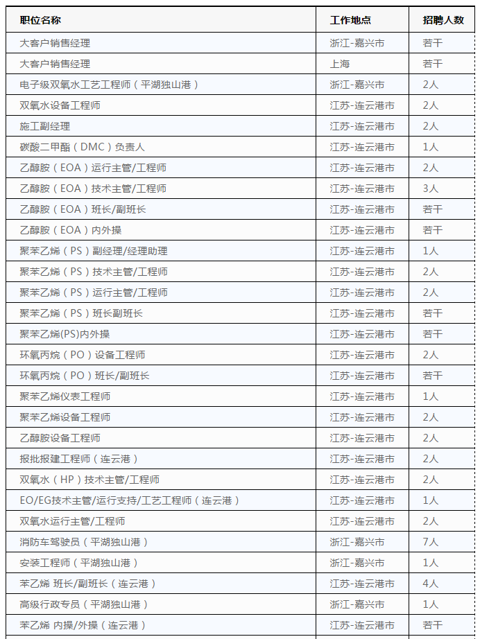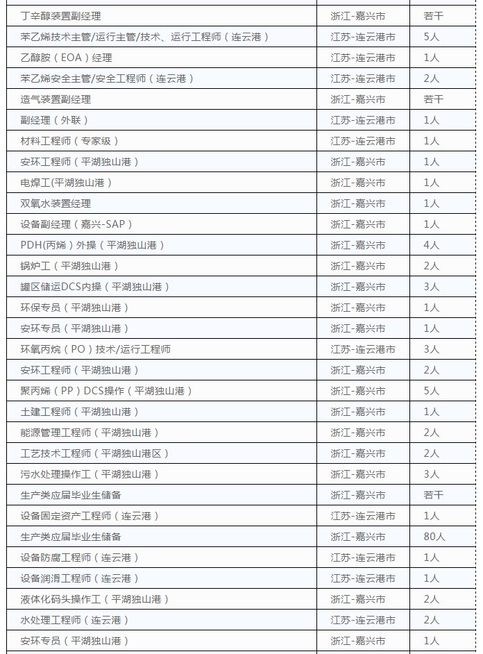 浙江衛(wèi)星石化48個(gè)崗位正在招聘