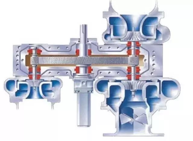 一般說(shuō),提高氣體壓力的主要目標(biāo)就是增加單位容積內(nèi)氣體分子的數(shù)量,也就是縮短氣體分子與分子之間的距離。為了達(dá)到這個(gè)目標(biāo),除了采用擠壓元件來(lái)擠壓氣體的容積式壓縮方法以外,還有一種用氣體動(dòng)力學(xué)的方法,即利用機(jī)器的作功元件(高速回轉(zhuǎn)的葉輪)對(duì)氣體作功,使氣體在離心力場(chǎng)中壓力得到提高,同時(shí)動(dòng)能也大為增加,隨后在擴(kuò)流道中流動(dòng)時(shí)這部分功能又轉(zhuǎn)變?yōu)殪o壓能,而使氣體壓力進(jìn)一步提高,這就是離心式壓縮機(jī)的工作原理或增壓原理。