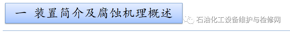 腐蝕流程:常減壓裝置,低溫HCl+H2S+H2O腐蝕,以及高溫部位的高溫硫和環烷酸腐蝕;焦化裝置,分餾系統低溫部位的H2S+HCI+NH3+H2O腐蝕以及銨鹽垢下腐蝕。