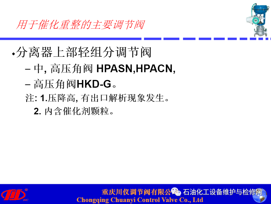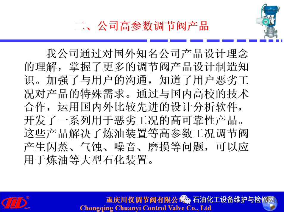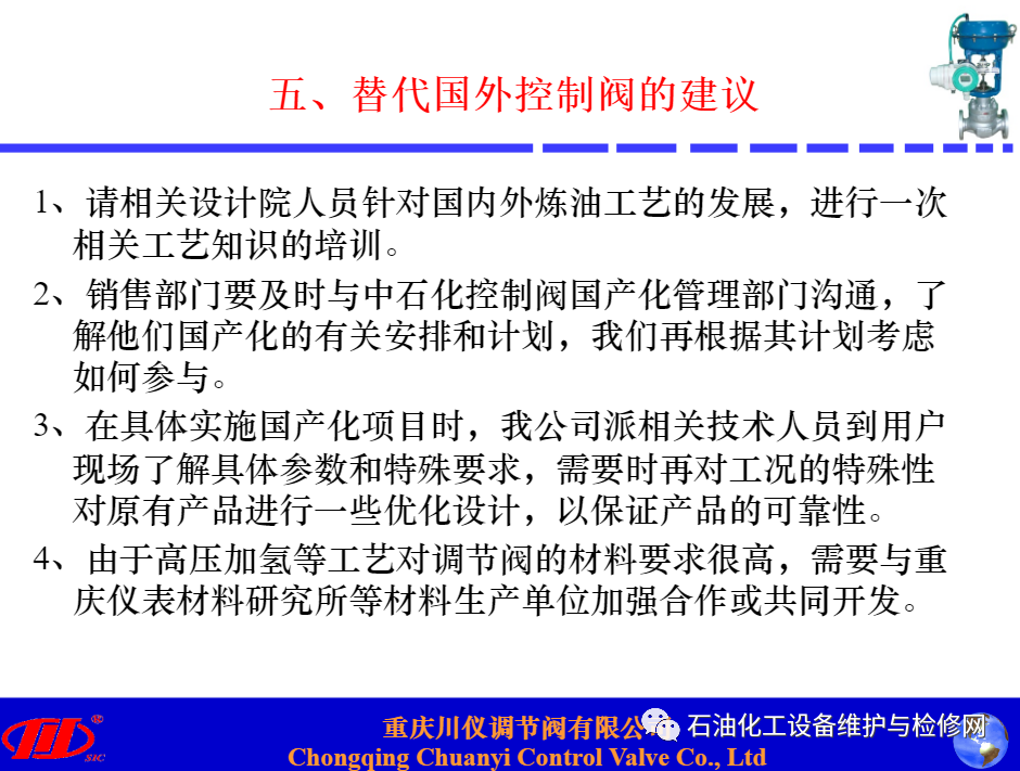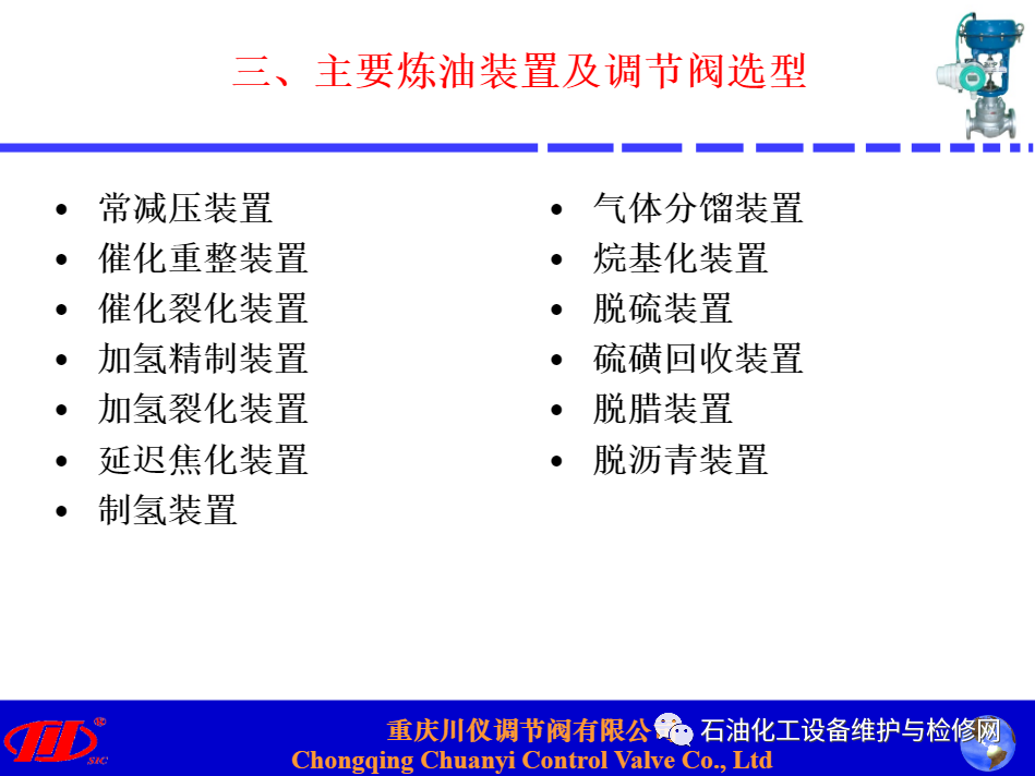 川儀調(diào)節(jié)閥在煉油項(xiàng)目中替代進(jìn)口閥的應(yīng)用分析講解.ppt
