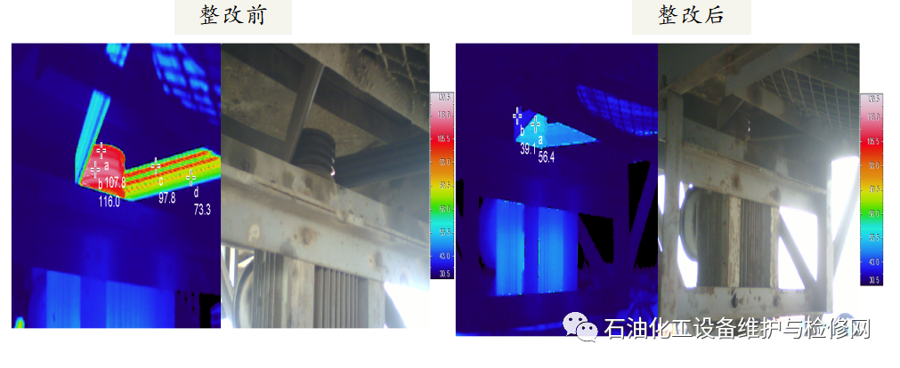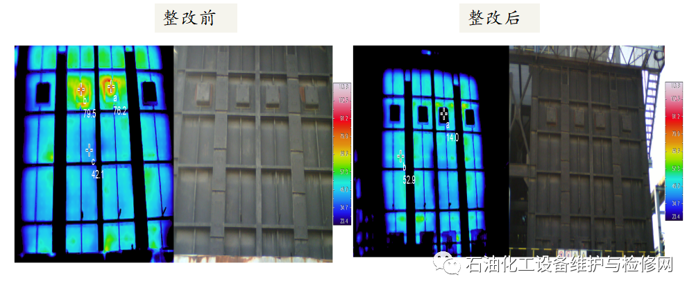 整改措施:檢修期間對防爆門處隔熱襯里進行修復(fù),修復(fù)后溫度14℃。