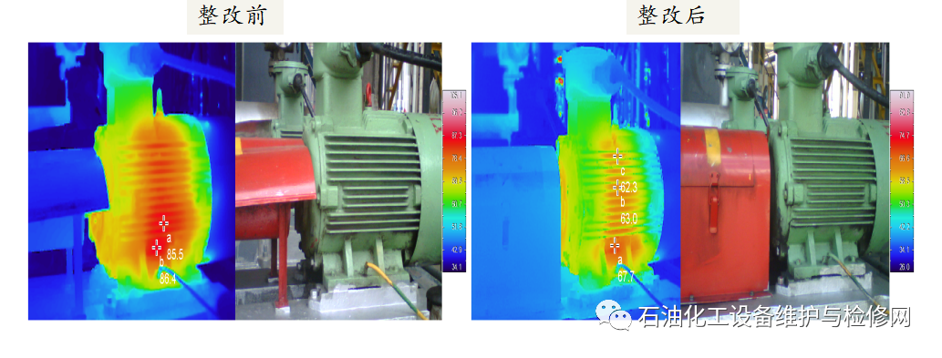 焦化壓縮機油站油泵電機定子溫度偏高(85℃,正常溫度65℃左右),初步判定為電機冷卻風(fēng)不足導(dǎo)致。