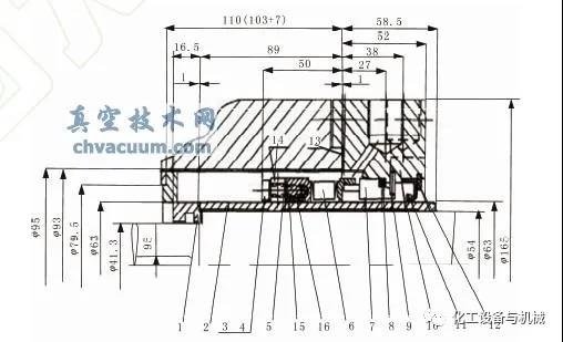 1-軸封圈;5-動(dòng)環(huán)密封圈;6-金屬波紋管;7-靜環(huán);11-水封;12-恰簧;16-動(dòng)環(huán)輔助密封圈