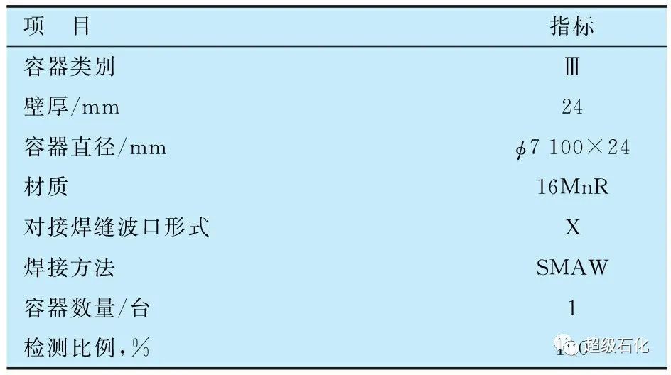 待檢對象為寧波市某化工區一臺球形儲罐,球罐的參數見表2。