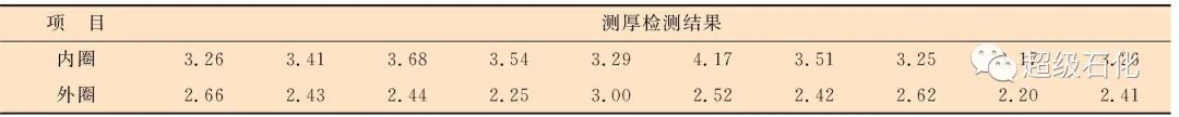 注:數據取罐頂測厚點奇數位置數據。