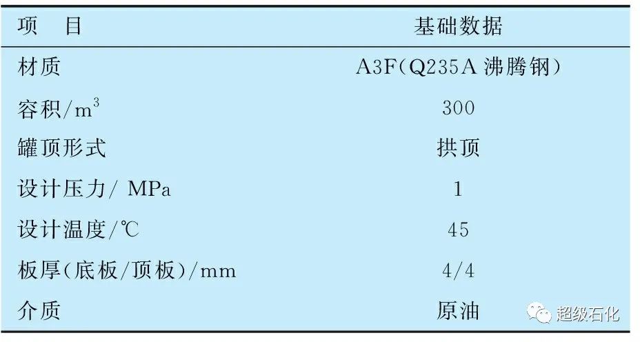 某石化公司零位罐區于1983年建成投用,有原油緩沖罐(G001至G004)4臺,輕污油罐4臺,原油緩沖罐基礎數據見表1。罐區主要承擔進廠原油的中轉和盛裝各類輕質污油的任務,其中每年中轉原油3 Mt左右。