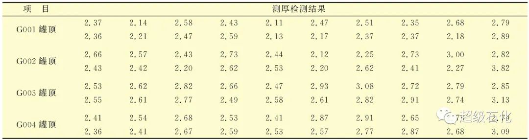 表2 罐頂超聲波測厚檢測匯總結果 mm