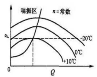 如圖所示,恒壓恒轉(zhuǎn)速下進(jìn)行的離心式壓縮機(jī)在不同入口氣體溫度時的進(jìn)行曲線,從曲線上可以看出在恒壓運(yùn)行工況下,氣體入口溫度越高,越容易發(fā)生喘振。因此,對同一臺離心式壓縮機(jī)來說,夏季比冬季更容易發(fā)生喘振。