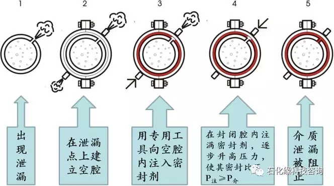 帶壓密封(堵漏)有廣義和狹義兩種定義。廣義而言,帶壓密封是指在連續(xù)生產(chǎn)過程中,當(dāng)裝置上某一部位出現(xiàn)流體介質(zhì)泄漏后,在不停止裝置運(yùn)行的情況下,對泄漏部位進(jìn)行有效封堵的“各種技術(shù)手段”。狹義的帶壓密封主要指“注劑式帶壓密封技術(shù)”。