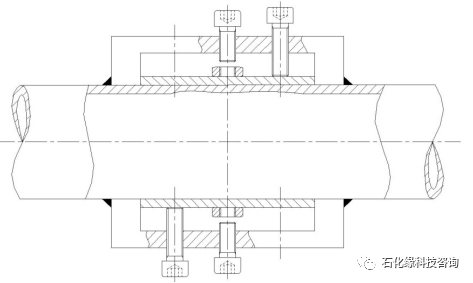 當(dāng)管壁出現(xiàn)穿孔,壁厚減薄原因造成壁厚δ實(shí)際<δ計(jì)算、軸向應(yīng)力RA>[σ]t,注射壓力P操>P臨等不安全因素時(shí),則采用以下兩種加固安全結(jié)構(gòu)。